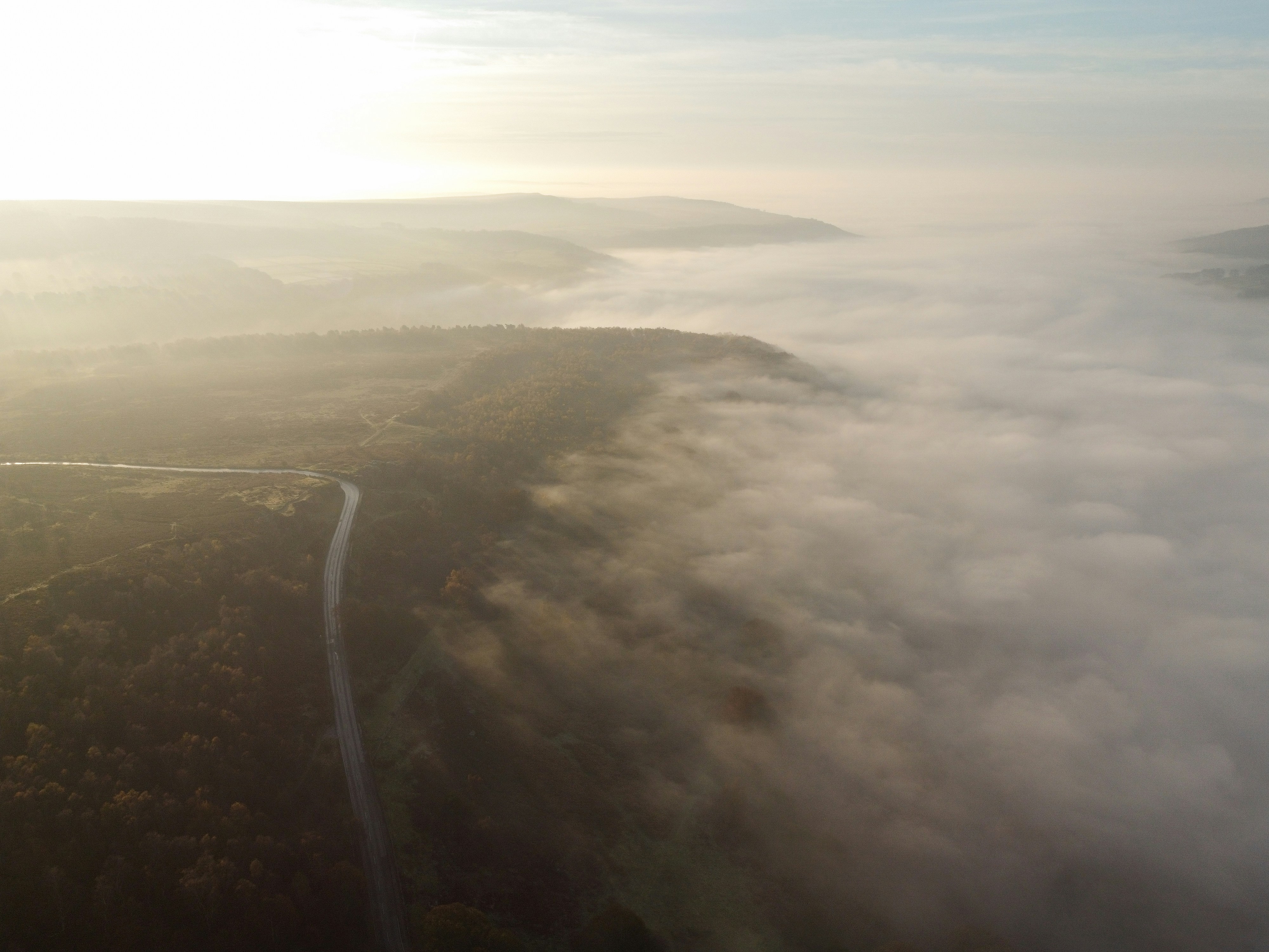 A man (me!) stood on the edge of a rocky outcrop ledge at Surprise View in the Peak District during sunrise.