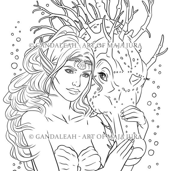 COLORING PAGE mermaid and seahorse by ColorYourFantasy on ...