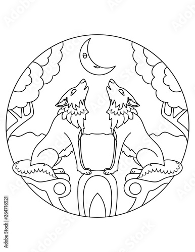 Wolf and Mandala moon - Wolves Adult Coloring Pages Coloring page : Wolf and Mandala moon. Skip. Ads by. Wolf howling in the moonlight during a starry night. From the gallery : Wolves. Artist : Gamma. 22 476 views 2 739 prints. Permission : For personal and non-commercial use only.